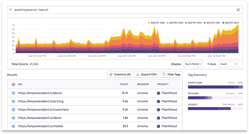 御社の組織全体に対し、アプリケーションの健全性を可視化する必要があります。Sentryは、エンジニア、サポート、プロダクトマネジメント、そしてそれ以外の人々へも洞察を明らかにするための文脈を提供します。