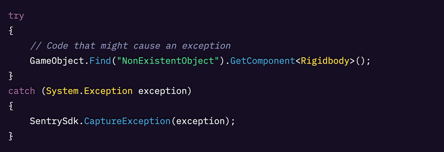 この設定により、Sentry は NullReferenceException や IndexOutOfRangeException のような未処理例外を自動的にキャプチャします。