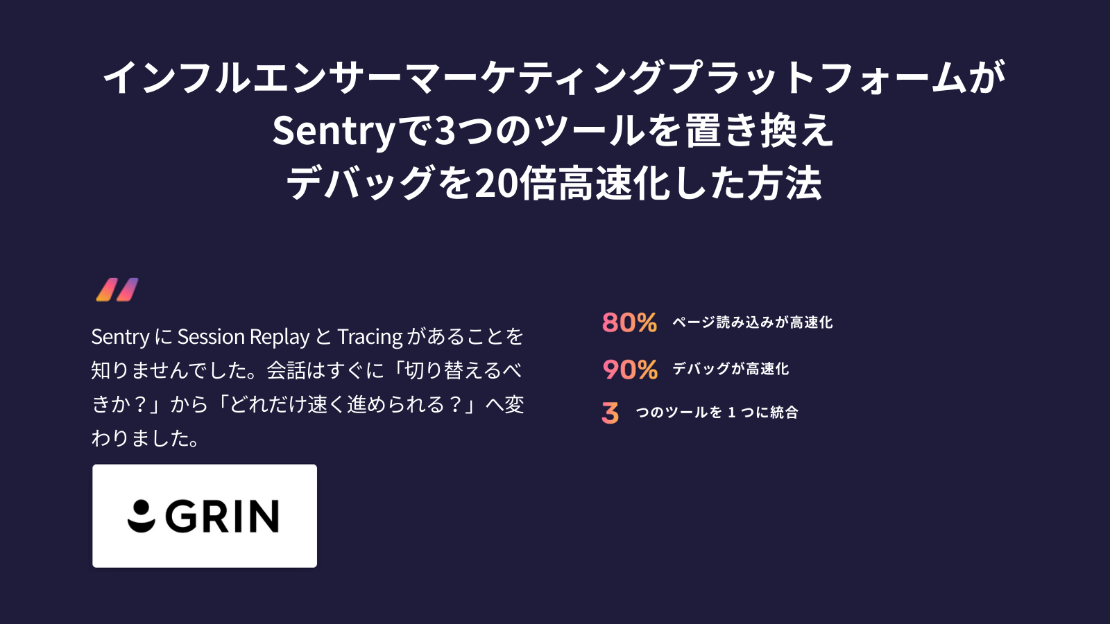 Sentry 導入後、Grin はパフォーマンスと生産性の両面で、いくつもの明確な成果を得ました。