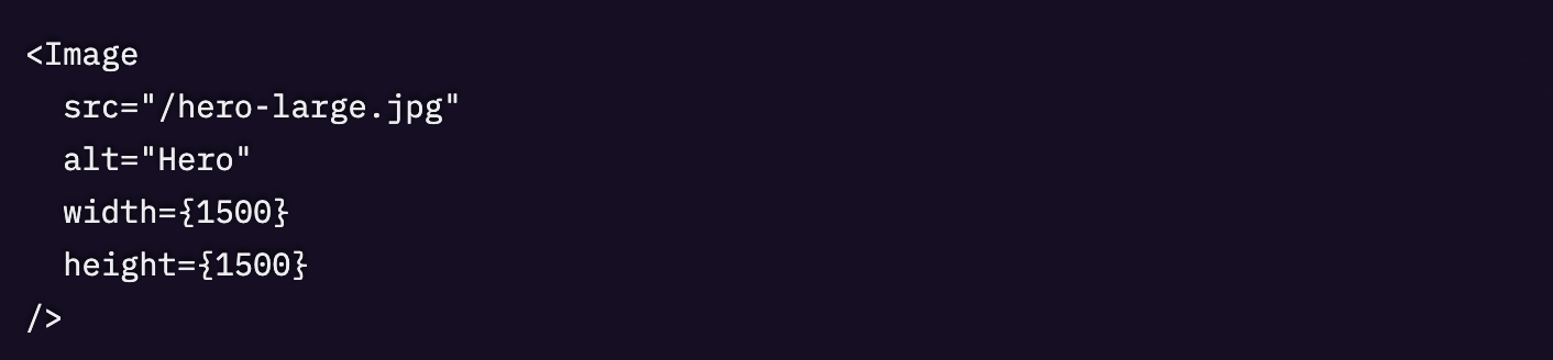 この人工的な遅延を取り除けば TTFB の問題は解消されますが、画像ギャラリーアプリのパフォーマンスをさらに向上させるには、追加の対策が必要です。まず Tinify を使ってヒーロー画像を圧縮し、そのうえで <img> 要素を Next.js の Image コンポーネントに置き換え、Cumulative Layout Shift(CLS)を防ぐために width と height を指定します。