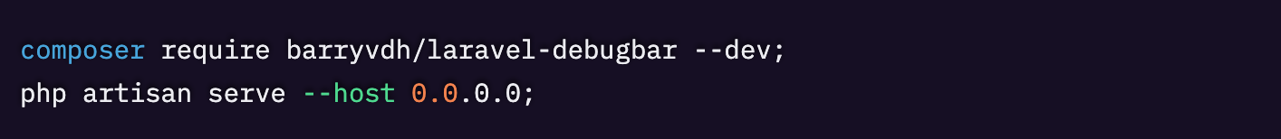 次に、以下のコマンドを実行して Debugbar をインストールし、アプリを再起動します。