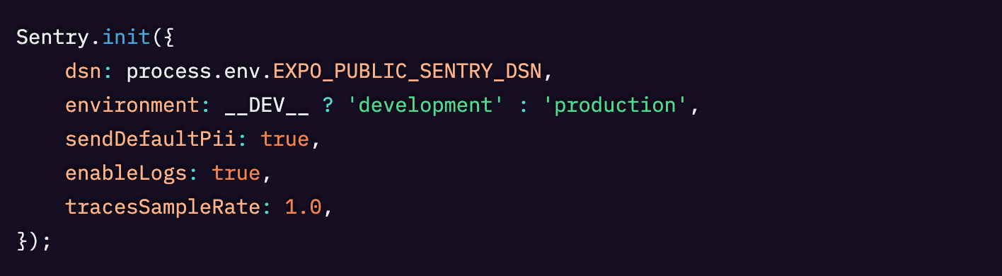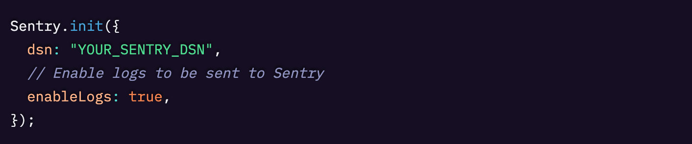 App.js の Sentry.init 呼び出しで、enableLogs: true の行の後に、次のコードを追加します。