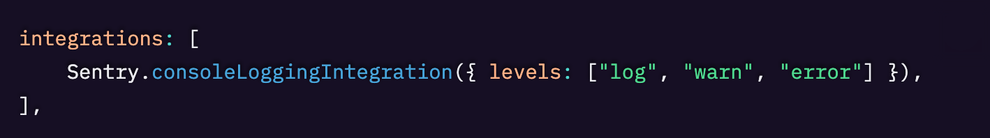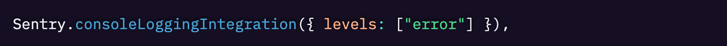 Sentry Logger API は動くようになりましたが、このアプリにはすでに、デフォルトの JavaScript の console オブジェクトを使ったロギングがあります。幸い、すべてを書き直す必要はありません。Sentry には、デフォルトの JavaScript ロギングと統合する方法も用意されています。