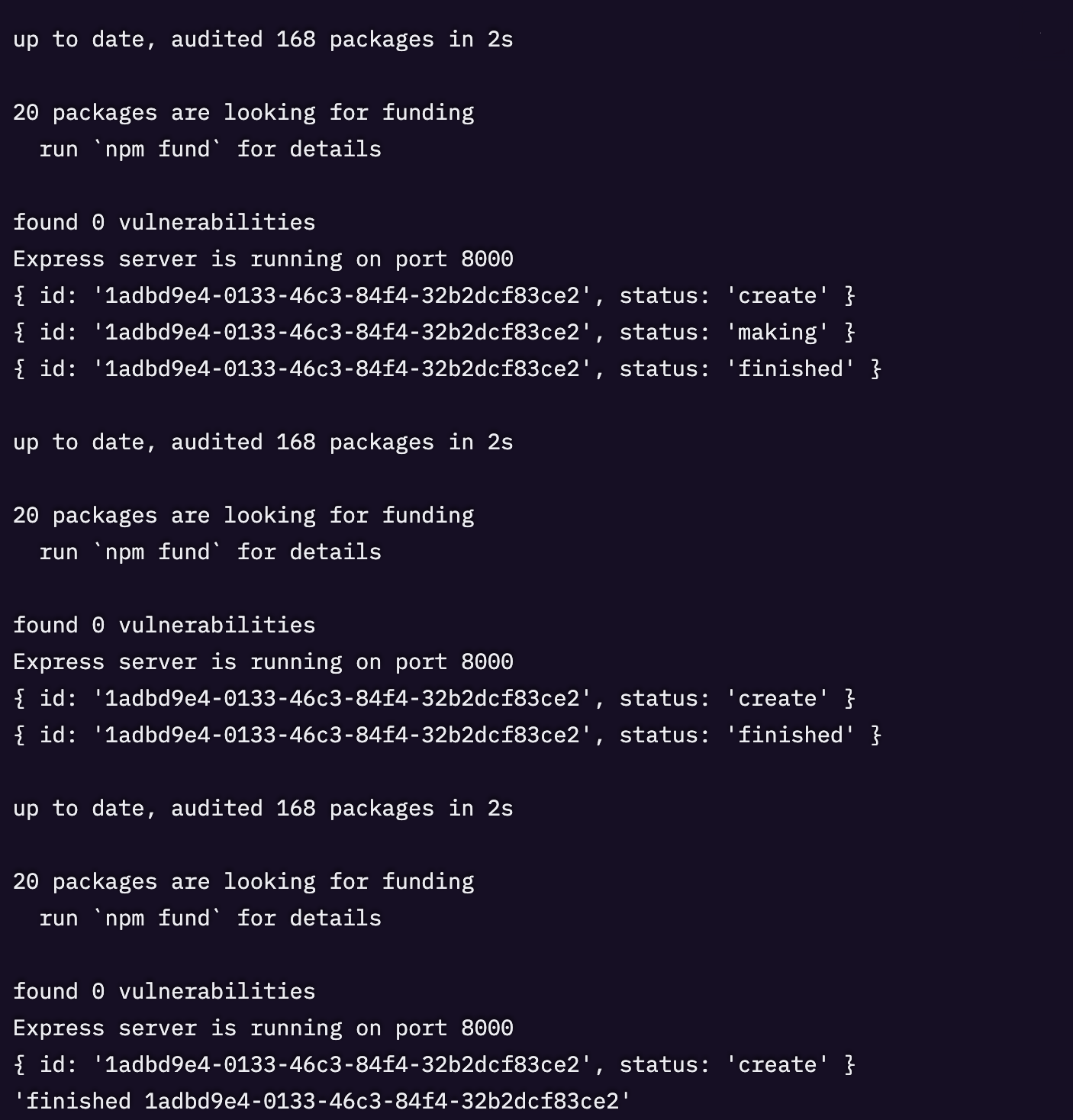 ▶️ Order status が約10秒後に finished に変わるまで、Check を繰り返しクリックします。