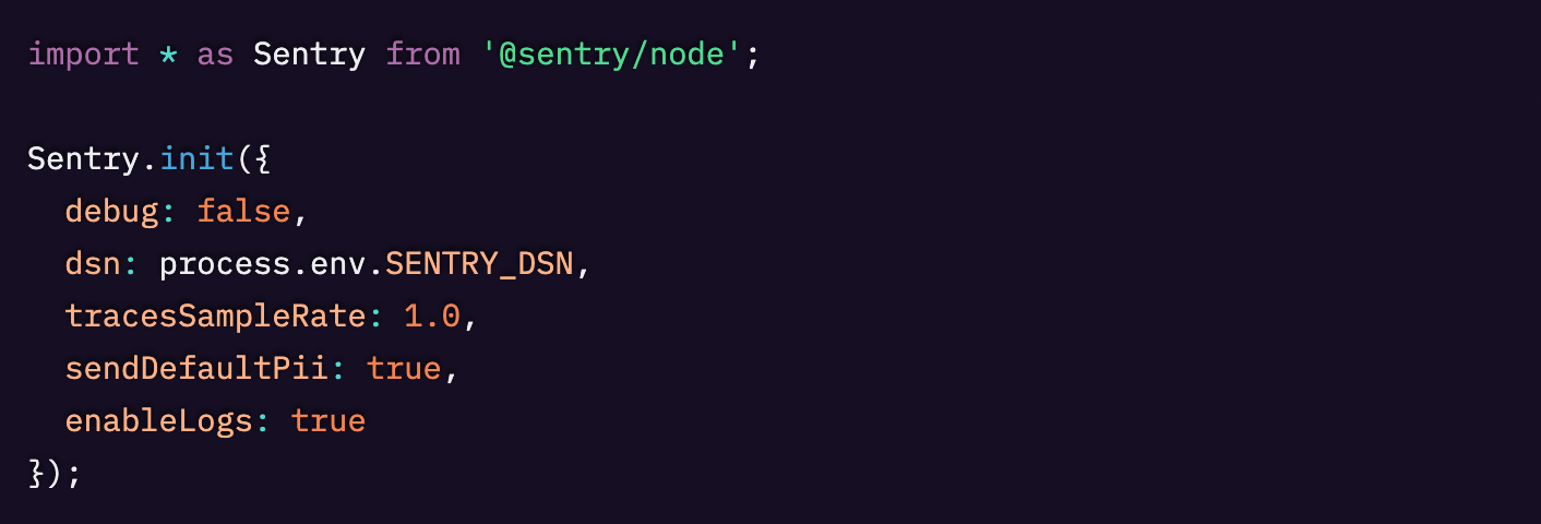サービスを Sentry で自動監視するのに必要なのは、基本的にこの単一の設定ファイルだけです。ただし、orderId のようなカスタム属性をサービス横断で付与したり、Logs を使ったりする場合は、コード内でも Sentry ライブラリをインポートし、いくつか手動の計測も追加する必要があります。