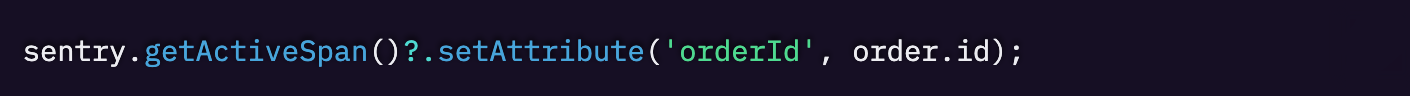 Sentry の Web サイトでトレース内の span をすべて確認すると、order ID 属性を持たない span があることに気づくかもしれません。ID 属性が必要なのに、Sentry が自動的に作成した span がなく、付与先がない場合は Web サイト側のコードが行っているのと同様に`startSpan()` を使って手動で span を作成する必要があります。