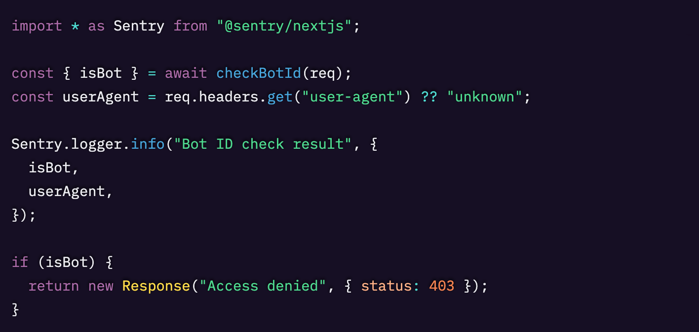 これはエラーだけでは足りないコンテキストが必要になるタイプの問題です。checkBotId 関数が判定を下すとき、どんなデータを見ていたのかを確認する必要がありました。