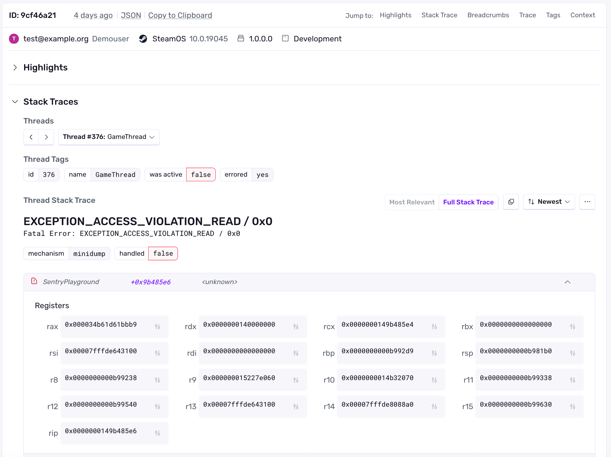 この修正はすでに Unreal Engine SDK と Sentry Native SDK(カスタムゲームエンジン用)に反映済みです。Unity と Godot SDK についても近日対応予定です。