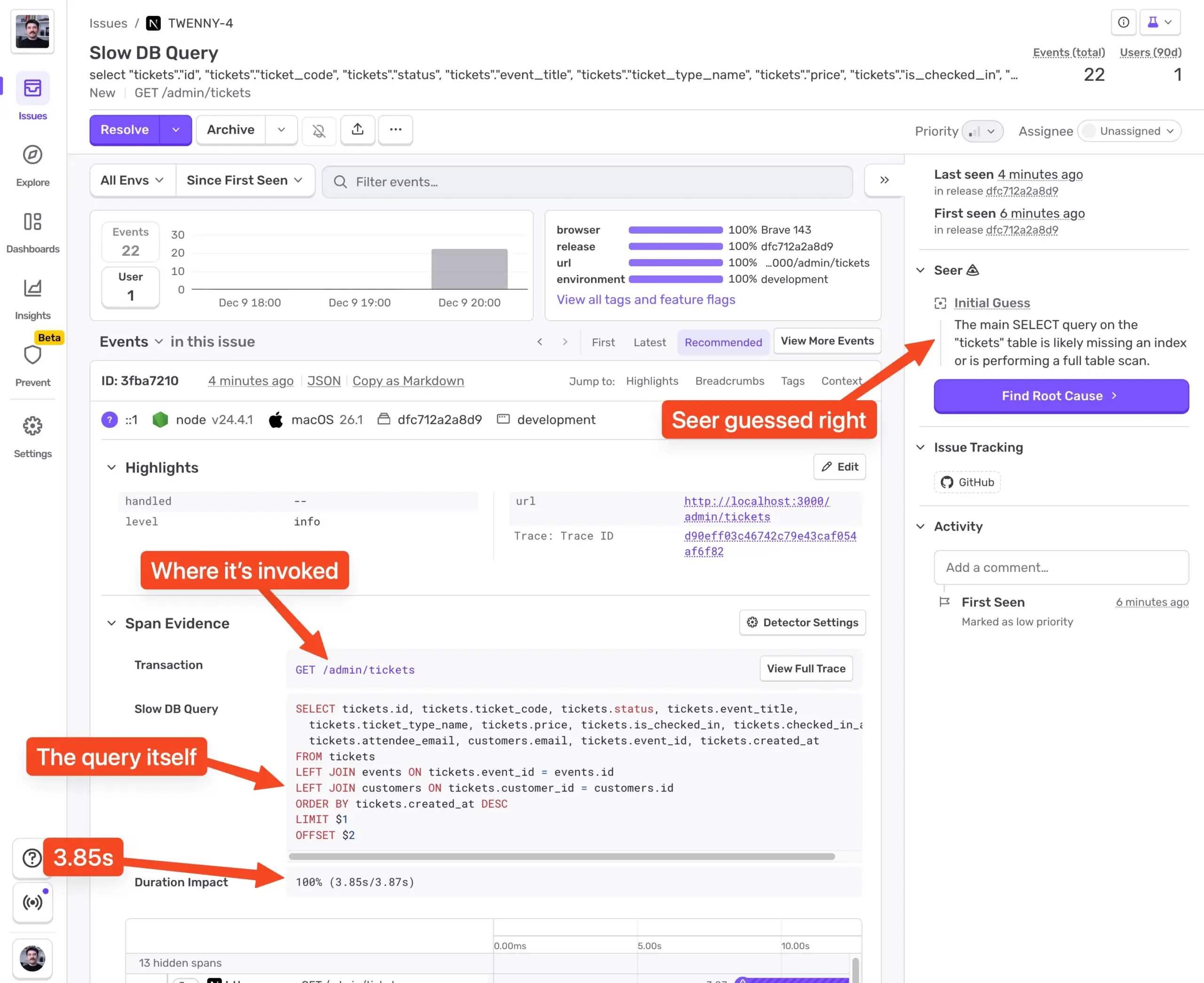Sentry の役割は単に「遅いクエリを見つける」ことではありません。理論と実際の間にあるフィードバックループを閉じることです。変更を加え、デプロイし、システムが自分の理解どおりにシステムが動いているかを即座に確認します。このケースでは、データベースが勢いよくうなずいてくれました。