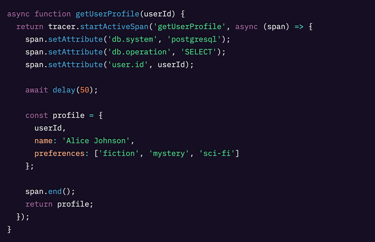 例えば、getUserProfileスパンには次のような属性が含まれています。