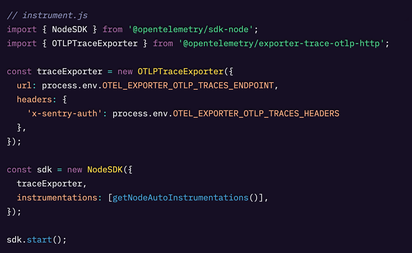 一方で、ゼロから始めてSentryのみを使用する場合は、ネイティブのSentry SDKの方が、すべてのSentry機能(spanイベント、Session Replay、プロファイリングを含む)を完全にサポートしています。OTLPサポートはまだベータであり、いくつかの制限があります。本ガイドの後半で両者を比較します。