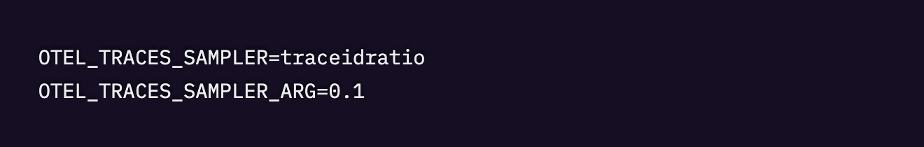 サンプリングレートを下げてください。本番環境で100%のトレースを収集する必要はほとんどありません。以下を.envに追加すると、10%のみサンプリングされます。