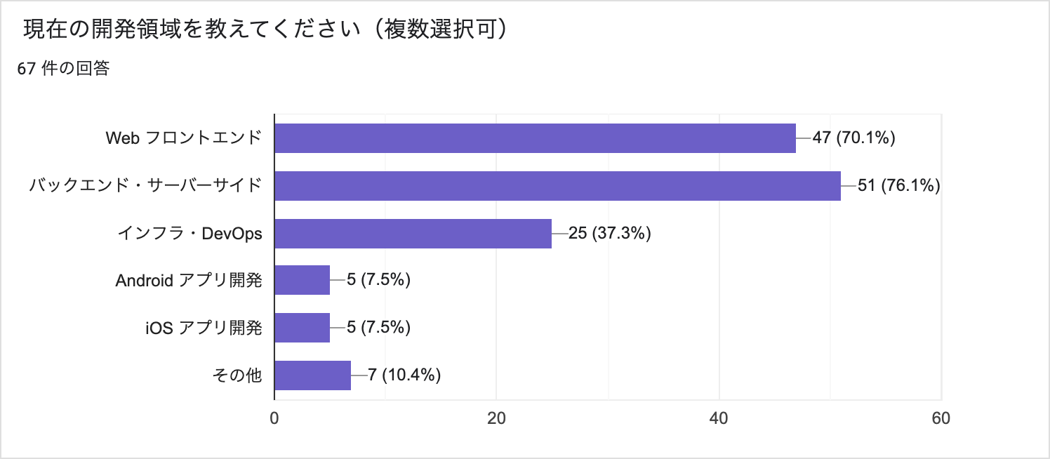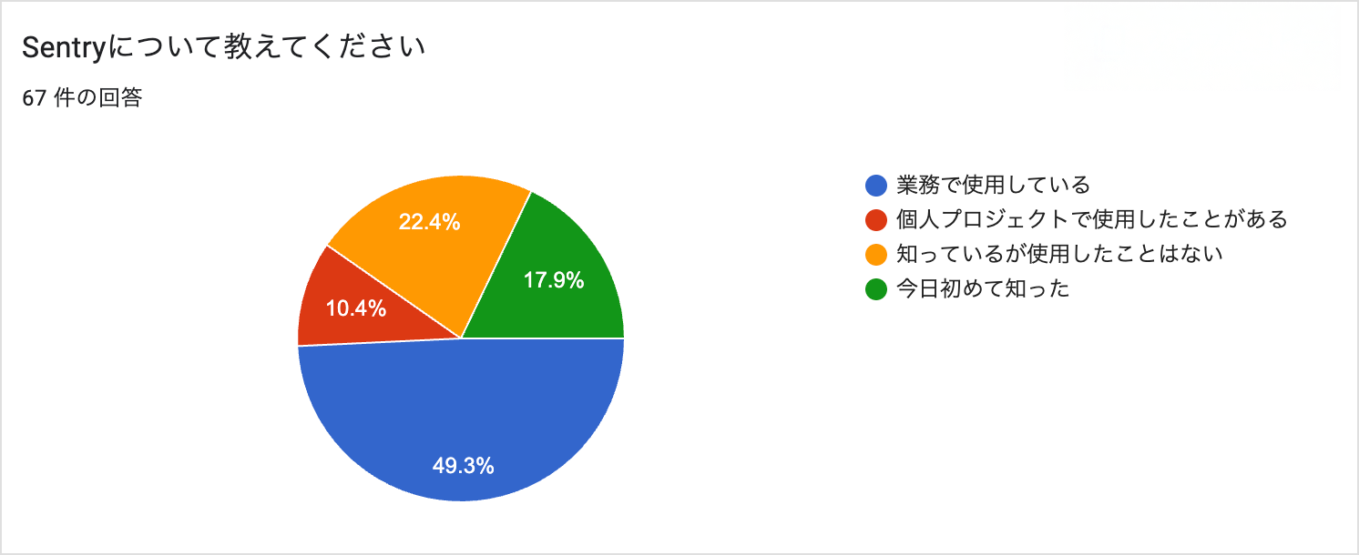 サーバーサイド開発者の間では、Sentryの普及率が55%と、モバイル開発市場(DroidKaigiでの23%)と比較して倍以上の高い認知度を示しました。これは、バックエンド開発においてSentryが既に標準的な選択肢として認識されていることを物語っています。