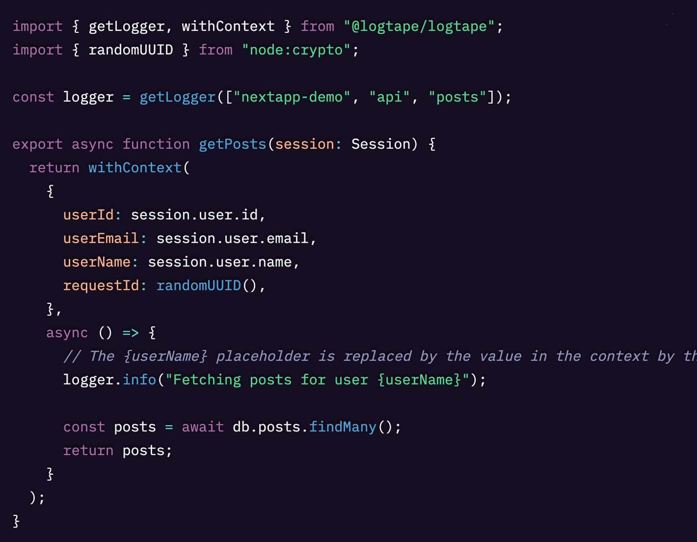 これですべてのコンポーネントがユーザーコンテキスト付きの logger を自動的に受け取れるようになります。