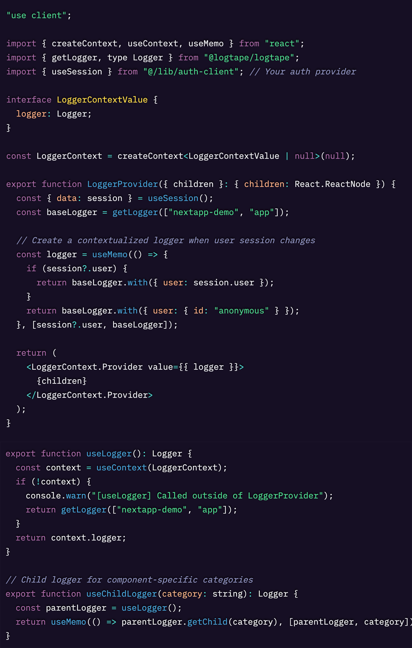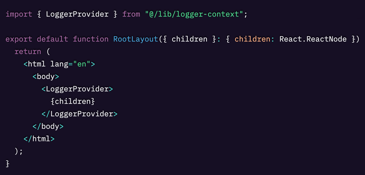 lib/logger-context.tsx(または context provider を定義している場所)にこのファイルを作成します。